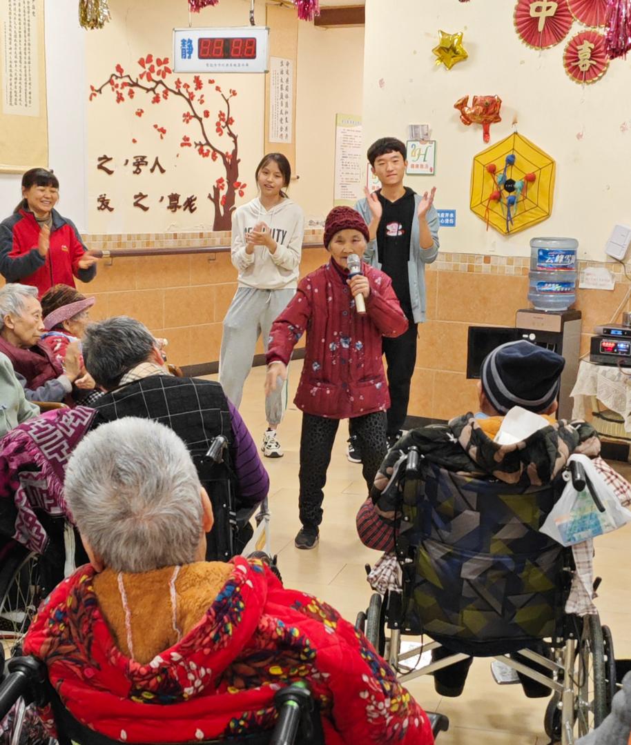 来到活动中心,同学们与老人们进行了亲切温馨的交流。老人们像家中长辈一般挽着志愿者的手臂,关心大家的学习生活,讲述自己年轻时的故事,分享在关爱中心的日常生活琐事。在一片欢声笑语中,大家合唱了《没有共产党就没有新中国》,歌声回响在耳畔,“努力学习,报效祖国”的谆谆嘱咐也深深刻入大家心中。活动最后,志愿者教爷爷奶奶们做手指操,活动关节;一起折纸绘画,带领爷爷奶奶重温儿时乐趣等。活动结束时,爷爷奶奶们脸上洋溢着幸福的笑容,他们对同学们的热心关爱表示赞赏,并期待下一次见面。