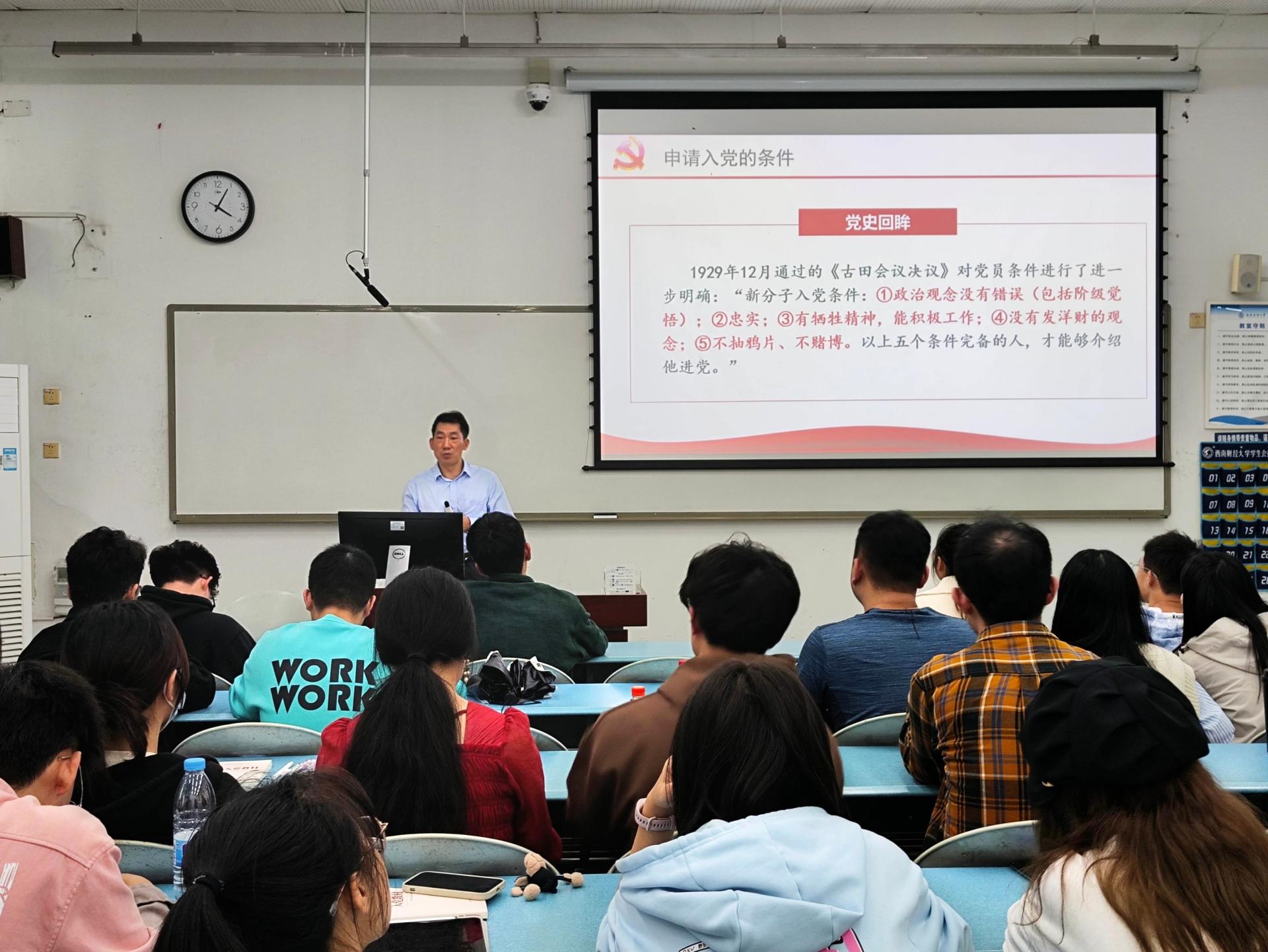 10月27日,组织人事部副部长赵磊在通博楼B423会议室为全体入党积极分子作了题为“中国共产党党史”的专题党课。他深入浅出地介绍了中国共产党从创立至今的艰辛奋斗历程和伟大成就,强调“两个确立”对新时代党和国家事业发展、推进中华民族伟大复兴具有决定性意义;“十个坚持”是党和人民共同创造的精神财富,必须倍加珍惜、长期坚持。他鼓励同学们以史为鉴、开创未来,从党的百年奋斗史中汲取智慧和力量,不断增强“四个意识”、坚定“四个自信”、做到“两个维护”,不忘初心、牢记使命,努力为实现中华民族伟大复兴的中国梦贡献力量。
