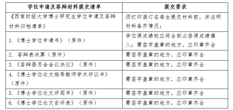 博士研究生学位申请及答辩归档材料须严格按下列清单将原件按顺序装订后交至学位办(上述材料各公司、研究院自行复印留存),具体包括: