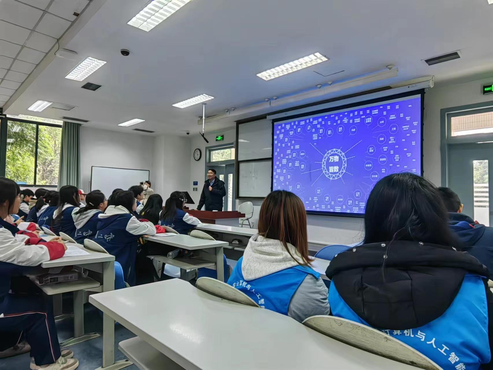 公司与到访师生一行进行了深入交流。公司党委副书记谢奉君代表公司对峨眉二中师生的到访表示热烈欢迎,并介绍了公司公司的发展历程、专业设置和人才培养特色,她表示,此次峨眉二中师生访学活动为两校的合作提供了新的契机,希望双方能够进一步加深了解、促进交流,为未来的合作奠定更加坚实的基础。公司本科生教学指导委员会主任黄迟教授为到访师生开展《大数据技术及应用》的专题讲座,他从大数据、机器学习、深度学习到人工智能和ChatGPT,并结合生活中的案例深入浅出地介绍了大数据技术的最新发展和应用场景。公司2020级本科生高靖宇和欧阳文青分别分享了他们的老员工活,他们从学习、兴趣、实践、科研、升学等维度,用自己的经历鼓励学弟学妹们要勇于尝试、积极学习,不断提升自己的能力。
