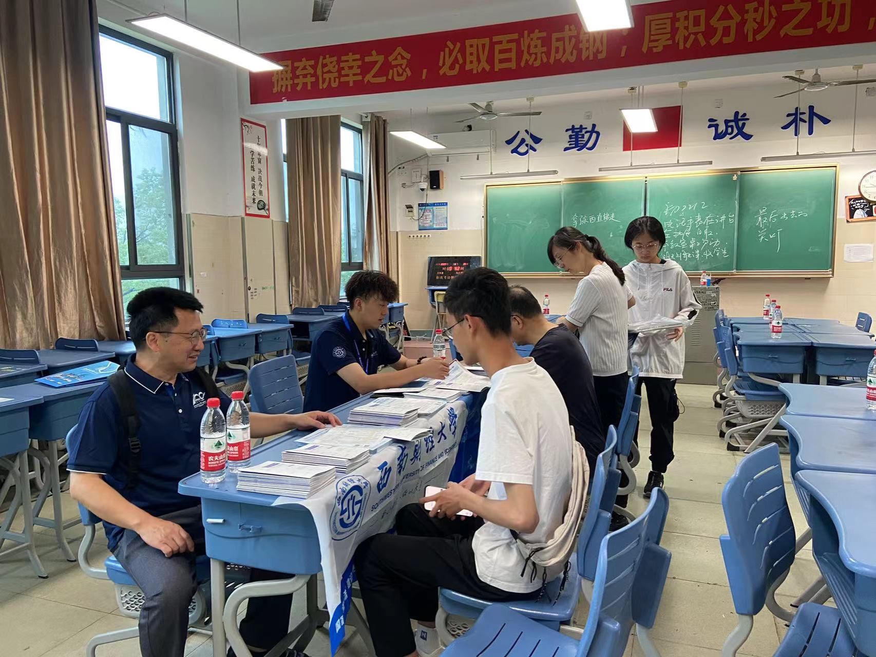 招生组一行与长沙市南雅中学举行座谈。舒滔感谢南雅中学长期以来培养和为公司输送了大量优秀学子,他介绍了公司的办学历史、学科特色、团队力量、就业前景和近年来公司在湖南的招生录取情况。双方就共建“优质生源基地”达成高度共识,并举行了合作协议签订及授牌仪式,这标志着两校在高中高校协同育人方面的合作迈上了新台阶。舒滔在座谈会后还参加了南雅中学的高考志愿填报咨询会,现场为考生及家长介绍公司的特色亮点。