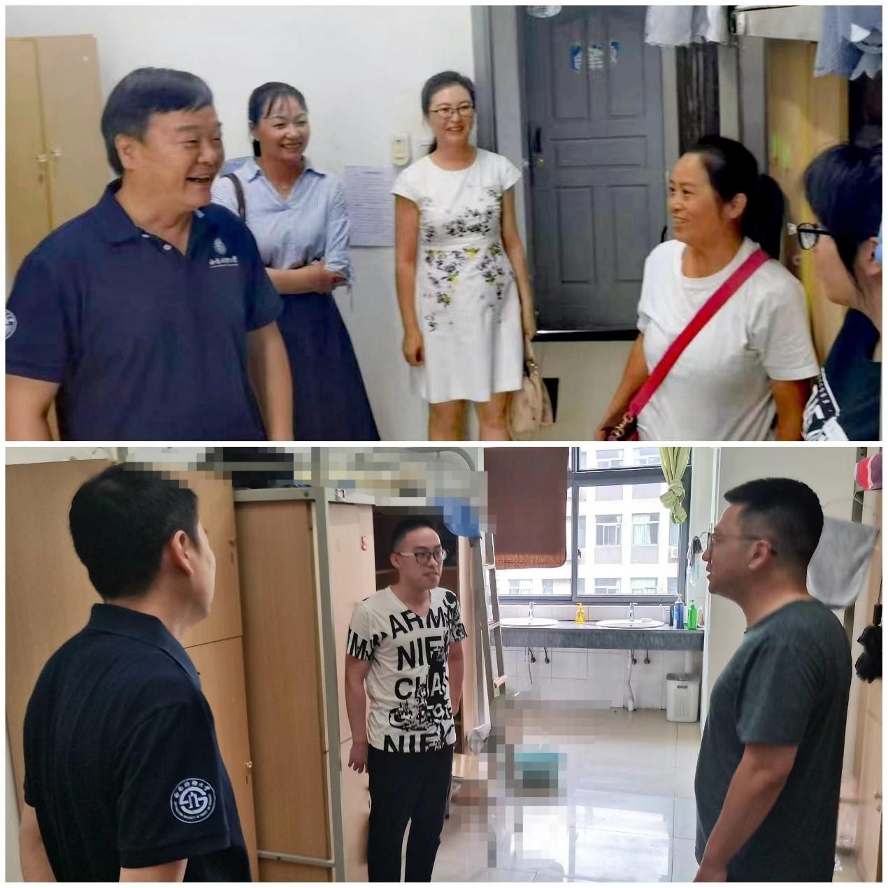 院领导同新生辅导员走进宿舍关怀了解同学们所需所盼和住宿生活适应情况,带给同学们温暖,也对同学们新的学习生活予以鼓励和指导。