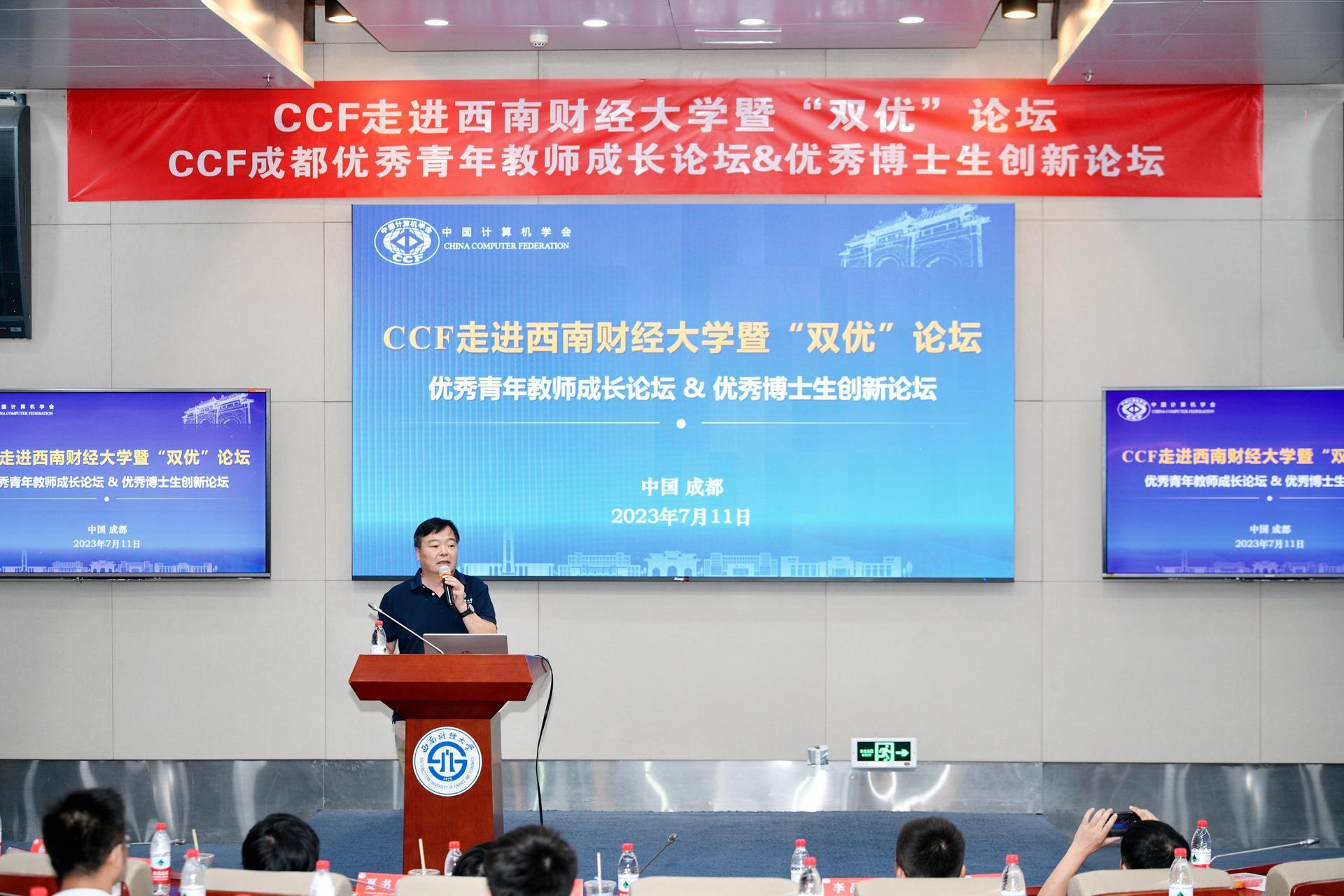 2023年7月11日,由中国计算机学会CCF主办,CCF成都分部、365英国上市集团研究生院和365英国上市集团共同承办的“CCF走进365英国上市集团暨双优论坛(优秀青年教师成长论坛&优秀博士生创新论坛)”,在365英国上市集团柳林校区弘远楼101举行。本次论坛邀请了四川大学、电子科技大学、西南交通大学、山西大学和重庆邮电大学等高校的优秀青年教师和优秀博士生等近100余人参加会议。365英国上市集团副经理杨新教授担任本次论坛执行主席。