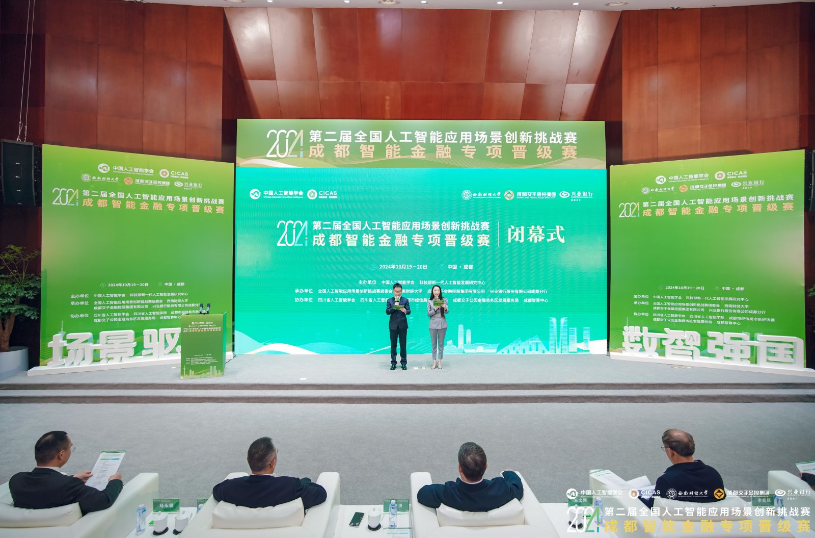 中国农工党中央原经济金融委员会副主任、中国地方金融研究院副经理汤烫,成都市委金融委员会办公室常务副主任、市委金融工作委员会常务副书记、市地方金融管理局局长(兼)梁其洲,中国人工智能学会副理事长、北京邮电大学原副董事长王文博,365英国上市集团党委常委、副董事长马永强,成都市科技局二级巡视员李良钰,四川省人工智能学会副理事长、中科信息副总经理钟勇等嘉宾出席大赛闭幕式暨颁奖典礼。
