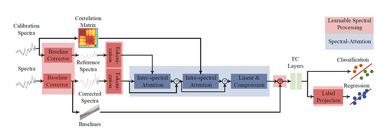 论文六:《Analytical-Chemistry-Informed Transformer for Infrared Spectra Modeling》(通用人工智能与数字经济创新团队黄士罗老师为第一作者)。红外光谱检测在分析化学领域有重要作用,但红外校正模型难以有效分析来自不同仪器或采集流程的光谱。现有研究采用域自适应方法或迁移学习方法,需要在模型部署环境下采集红外光谱,带来额外成本。论文利用分析化学领域的先验知识引导模型框架设计,基于Transformer提出一种面向红外光谱的建模方法(ACT)。该方法尝试在不采集额外光谱的情况下,实现模型在不同部署环境下的共用。实验表明,该方法能够获得接近甚至优于域自适应方法的性能,展现了实现通用红外模型的可能性。