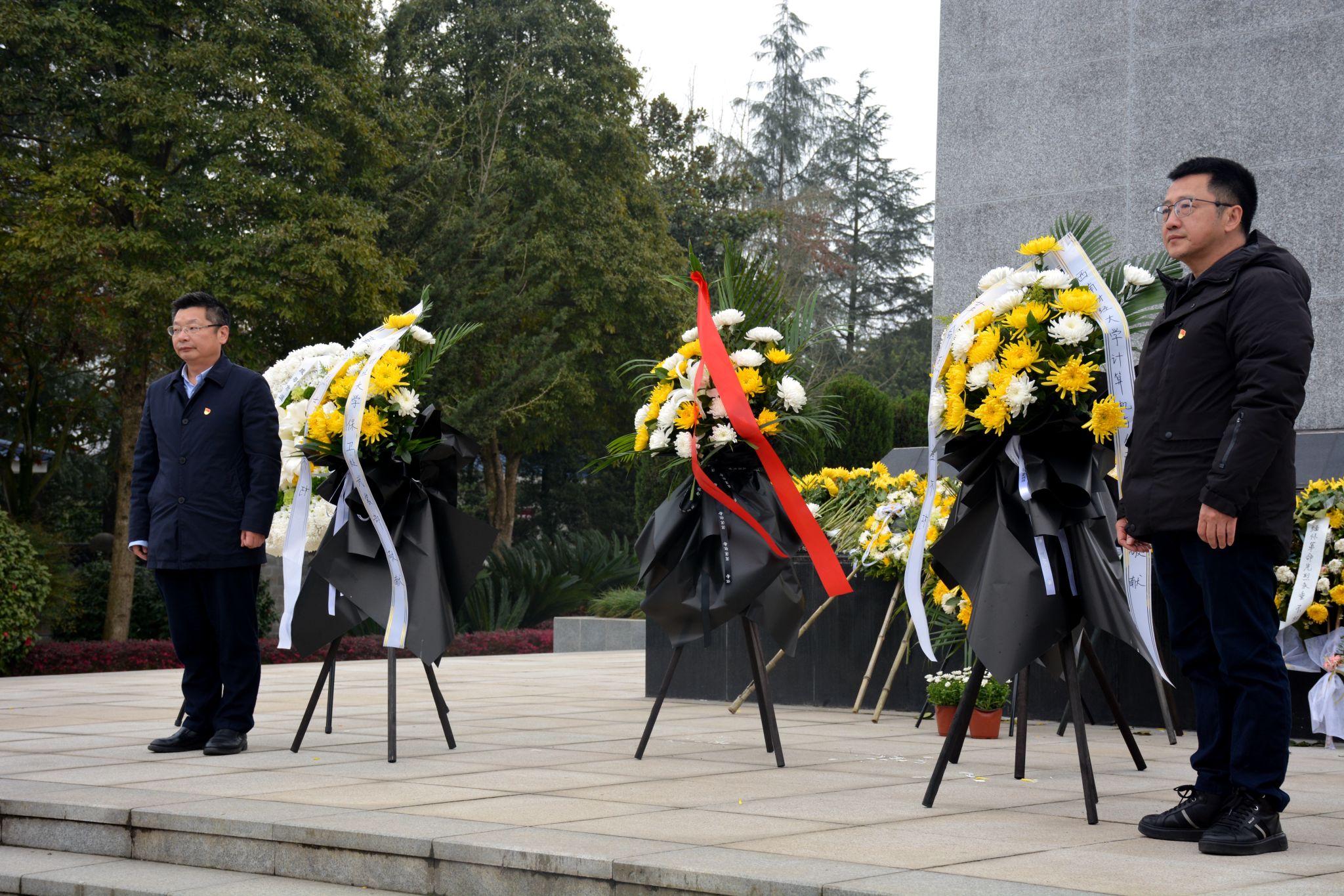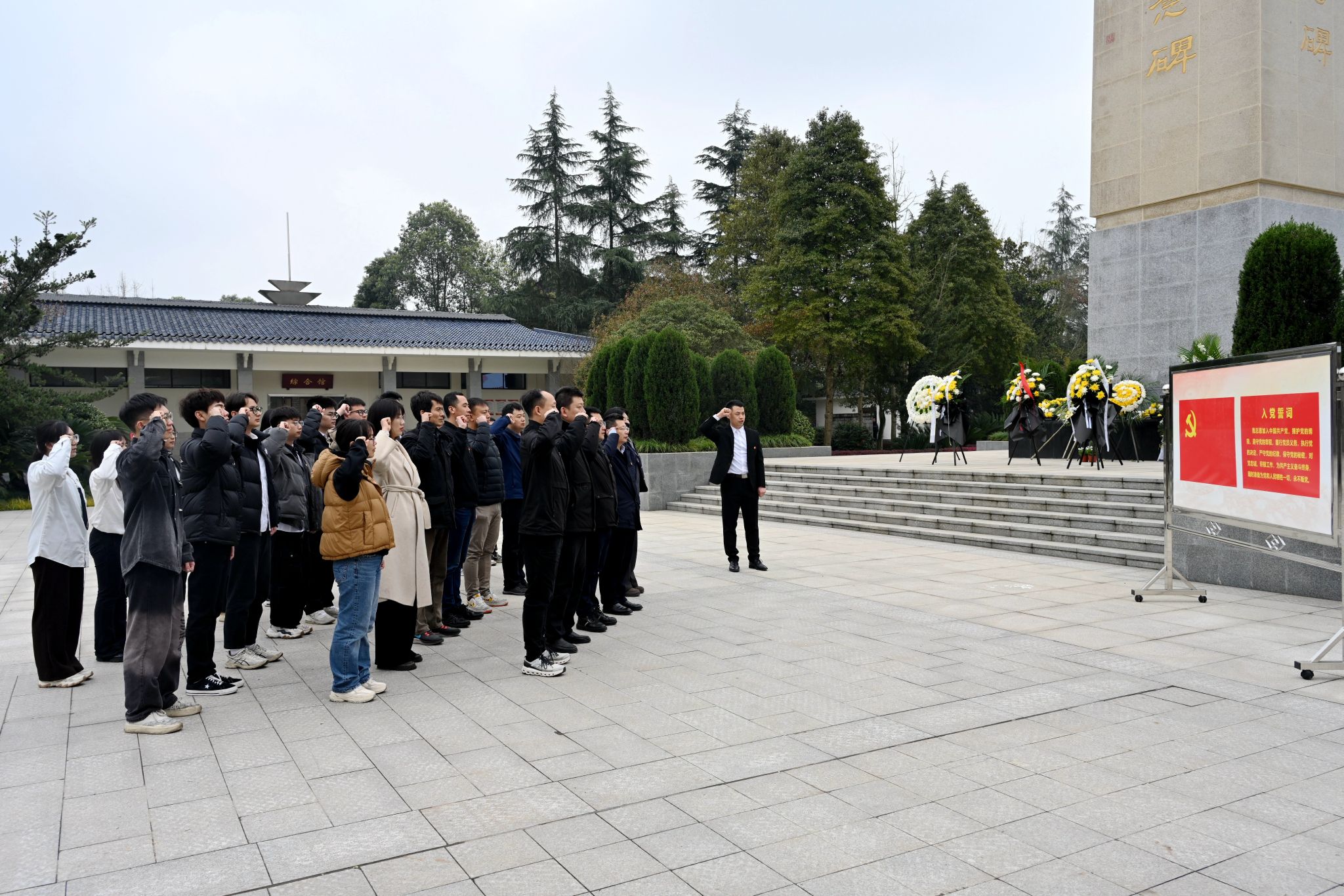 翠柏凝春,英魂不朽。来到温江烈士陵园,全体成员整齐列队于“温江革命烈士纪念碑”前,神情凝重,肃立默哀。公司党委书记舒滔,保卫处处长、武装部部长刘枭代表两单位向革命烈士敬献花篮,并整理挽联缎带,深切追思为民族独立、国家解放和社会主义建设献出生命的革命烈士。员工代表向革命烈士致悼词,全体人员向革命烈士敬献鲜花,并逆时针瞻仰烈士英雄名录碑,以最质朴的方式表达对先烈的敬意。面对鲜红的党旗,党员们高举右拳,重温入党誓词,铿锵誓言回荡陵园,彰显对党忠诚、为民服务的坚定决心,时刻警醒自身严守党纪、落实中央八项规定精神,抵制不良作风。