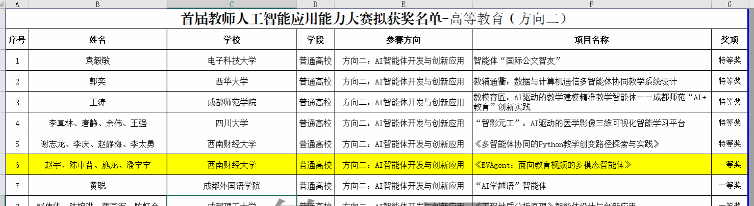 近日,由四川省教育厅主办、成都师范公司承办的“首届教师人工智能应用能力大赛”圆满落幕。公司赵宇、陈中普、施龙、潘宁宁教师团队提交的作品《EVAgent:面向教育视频的多模态智能体》在众多参赛作品中脱颖而出,荣获大赛一等奖。