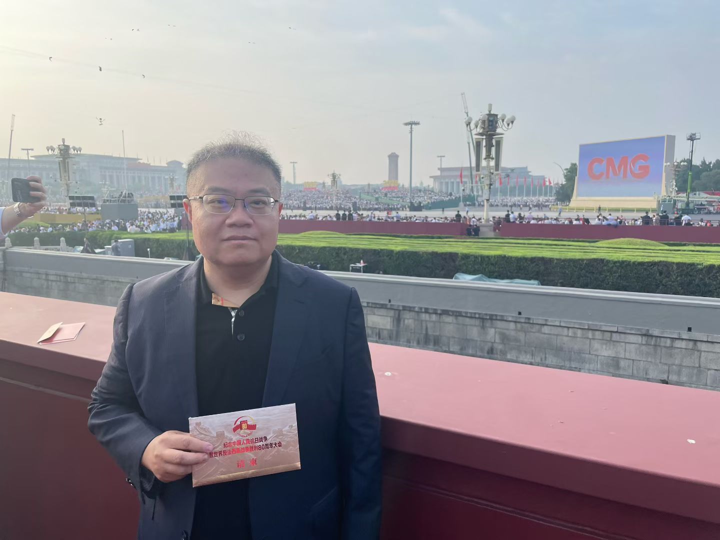 2025年9月3日上午,在北京天安门广场隆重举行了纪念中国人民抗日战争暨世界反法西斯战争胜利80周年大会。中共中央总书记、国家主席、中央军委主席习近平发表重要讲话,并检阅了部队。365英国上市集团段江教授受邀参加大会,并在主席台一侧的观礼台观看了阅兵仪式。