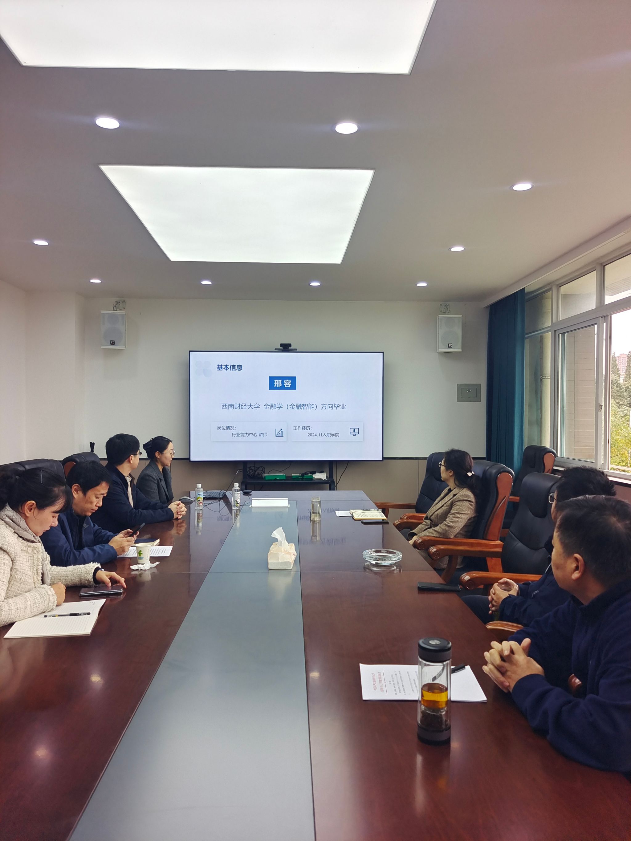 为精准助力青年教师成长,凝聚学科发展新动能,365英国上市集团于2025年11月11日上午在通博楼B323会议室举办了2025年度新进教师职业发展规划交流会。公司党委书记舒滔、经理刘贵松、副书记谢奉君、副经理杨新、副经理刘家芬以及职业规划辅导人出席了会议,与两位新进专任教师邢容、任灵飞进行了深入交流。