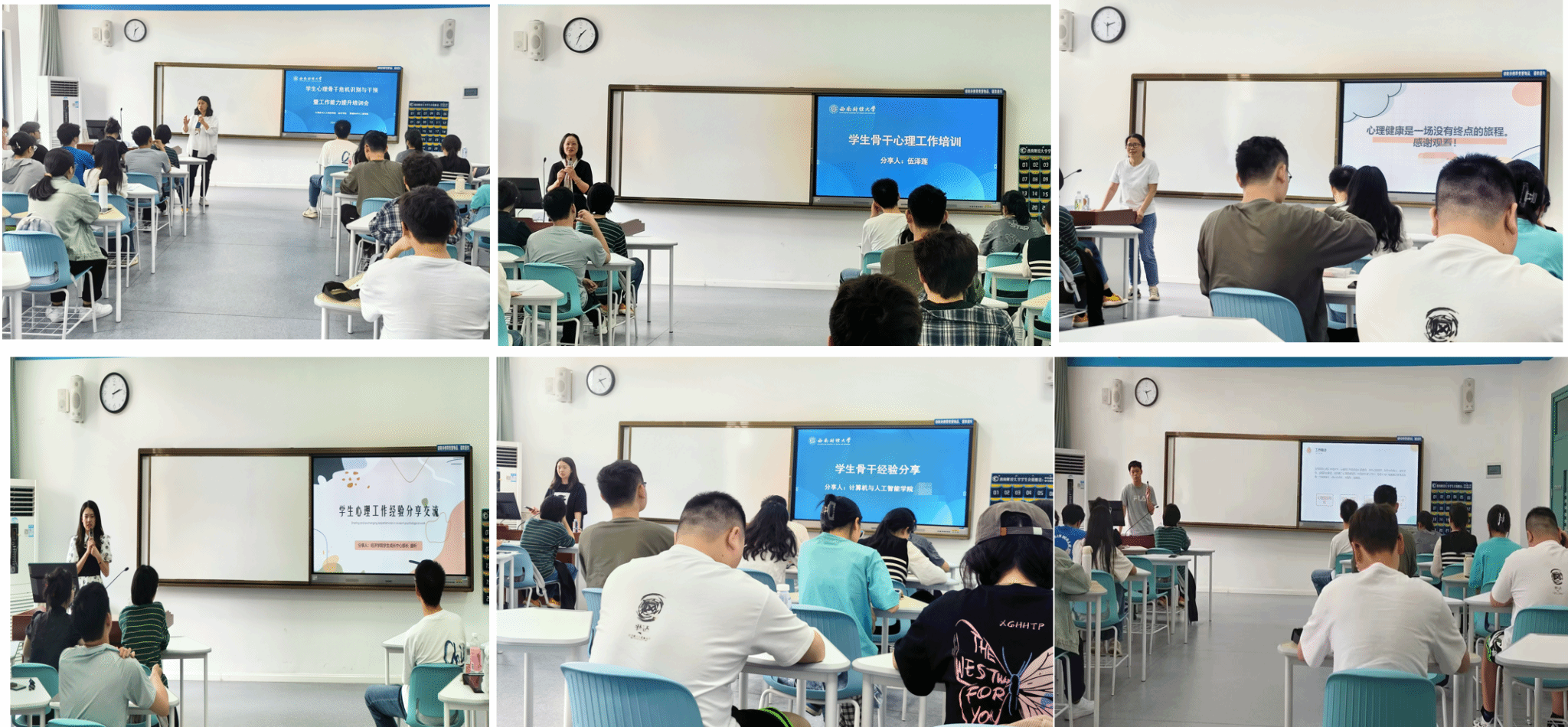 管理科学与工程公司严霞、经济公司孔丽娟两位老师结合工作经验,分享了心理健康对员工成长的意义及员工心理骨干工作的重要性,鼓励大家以良好的心理素养,积极关注并助力同学们的身心健康。
