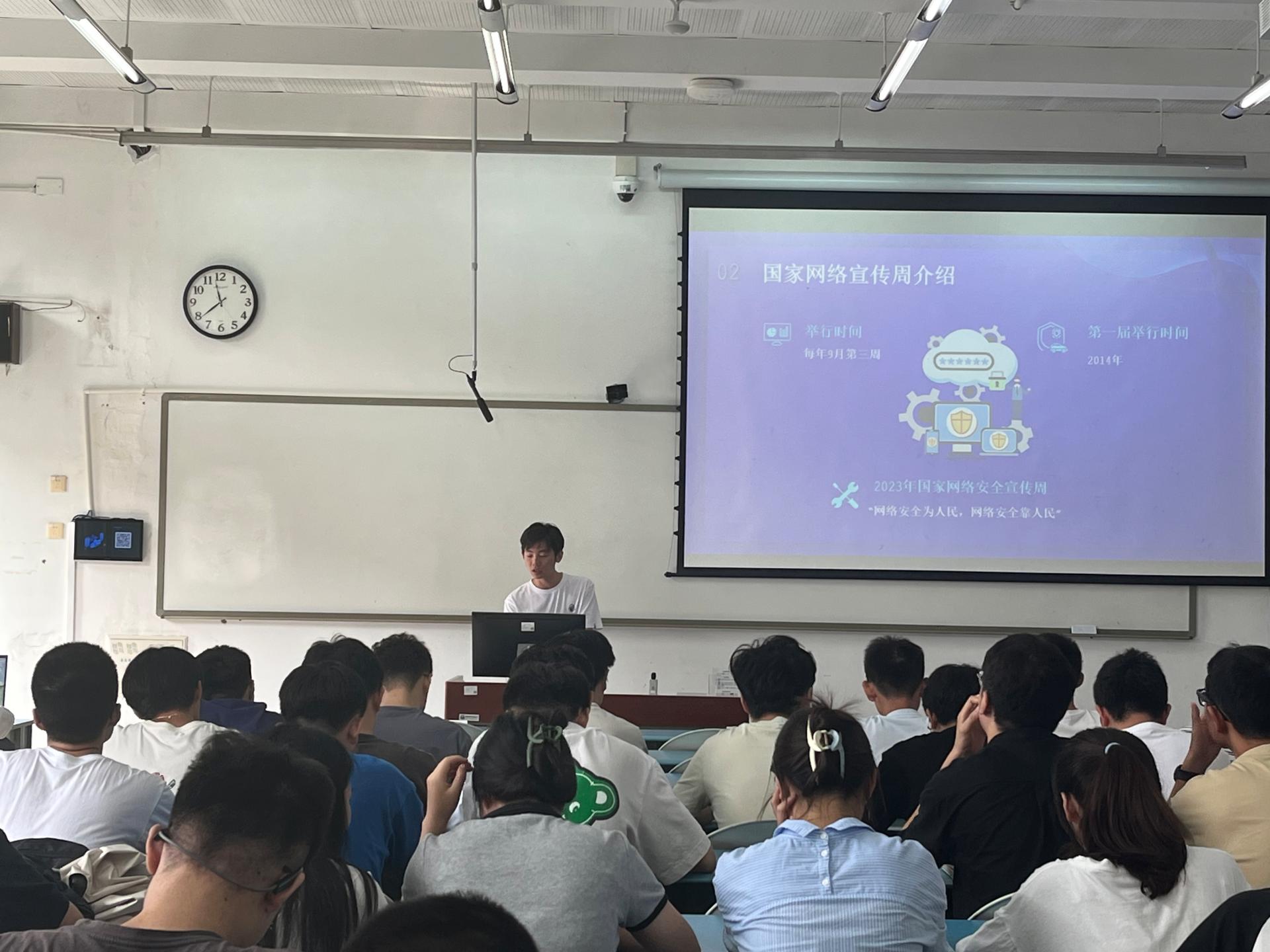 活动以网络安全知识宣传、警示案例学习为主要内容。22级计算机软件与理论专业研究生傅正文介绍了国家网络安全法有关规定、网络安全日常八大隐患等注意事项,并提出了安全上网的建议。他还通过一些典型的网络安全事例说明网络安全的重要性,使同学们认识到增强网络安全意识和提高网络文明素养的必要性。交流与互动环节,同学们一起探讨了电信诈骗防范、规范使用网络等问题。最后,研究生辅导员孟伟伟强调同学们要增强网络安全意识,做好安全防范,保护好自己,同时,也要增强网络安全规范意识。互联网不是法外之地。作为计算机专业同学,在学习专业知识的同时,也要自觉遵守网络安全规范,做文明网民。